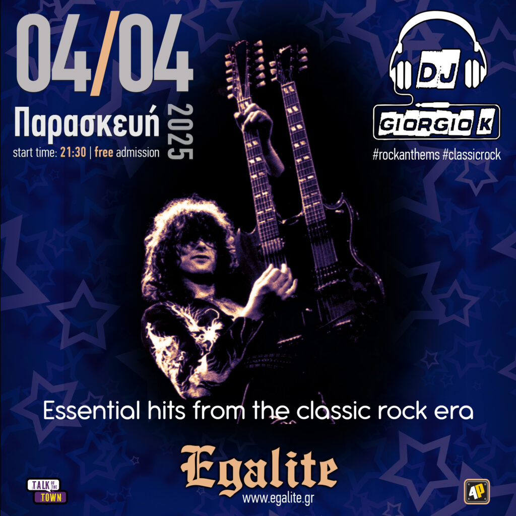 Latest News News Giorgio K 🎧 από #team4p|δημοσιευμένο 21 Φεβρουαρίου 2025 Παρασκευή 4 Απριλίου on decks Giorgio K • #Rock Anthems • Best of Classic Rock • warm up 21:30• free admission• 210 2716461 #egalite_pub #djset #djGiorgioK #2k25