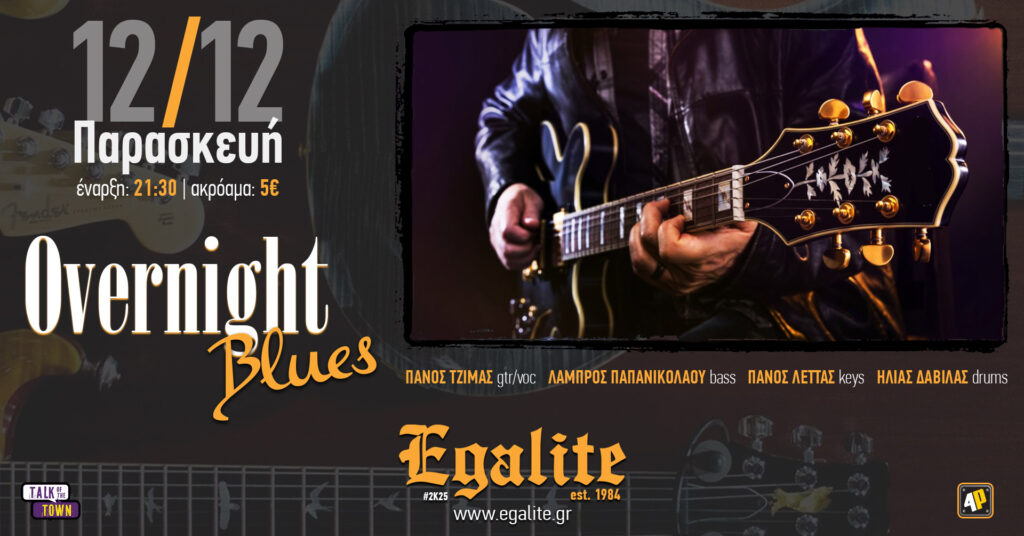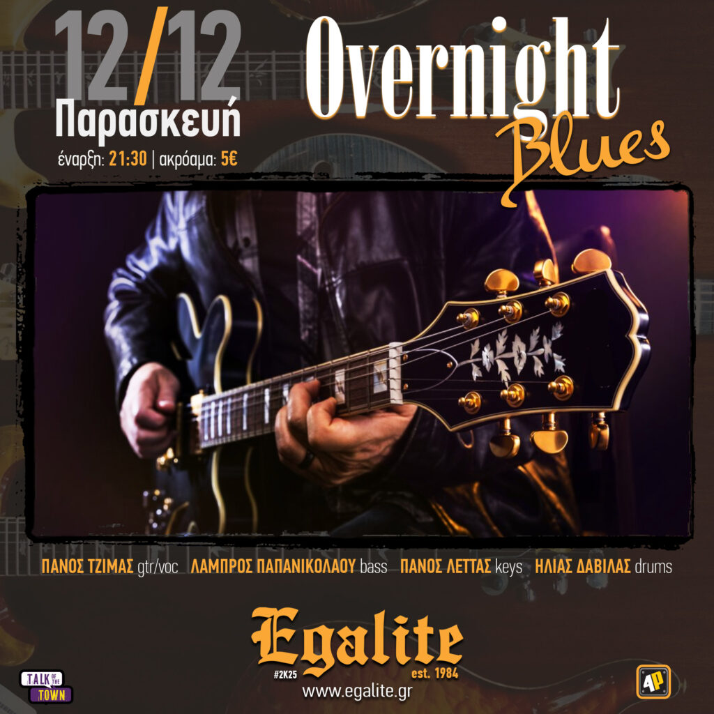 Το κουαρτέτο των #OverNightBlues, με blues standarts & rock επιλογές, προσκαλούν το κοινό σε μια απολαυστική βραδιά!