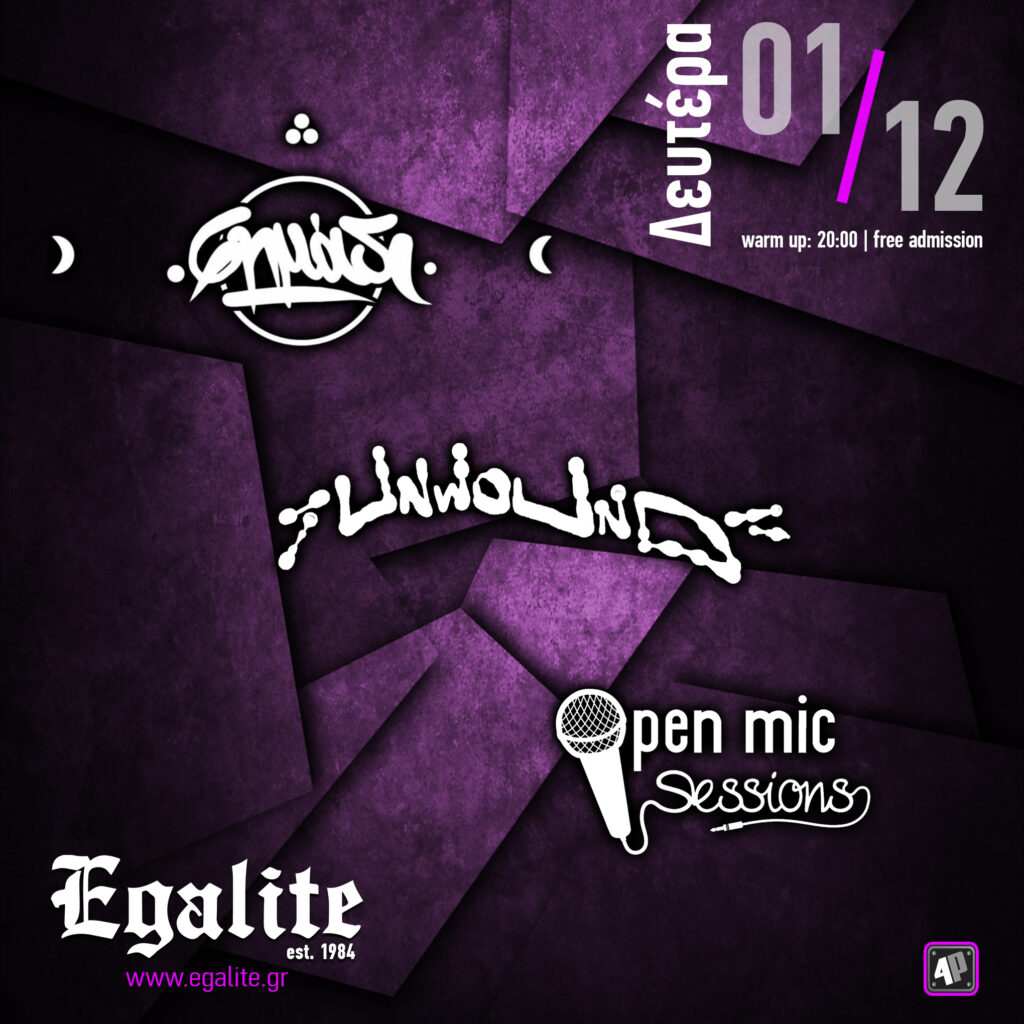 Ένας νέος μουσικός κύκλος “ανοίγει” όπου συχνά – πυκνά θα φιλοξενούμε καλλιτέχνες της εναλλακτικής & underground rap/hiphop σκηνής, στο πλαίσιο των Open Mic Sessions για όσ@ & όποι@ επιθυμούν να εκφραστούν!