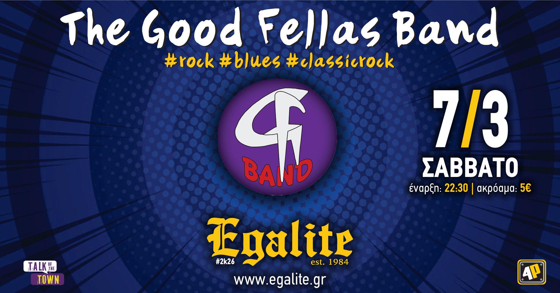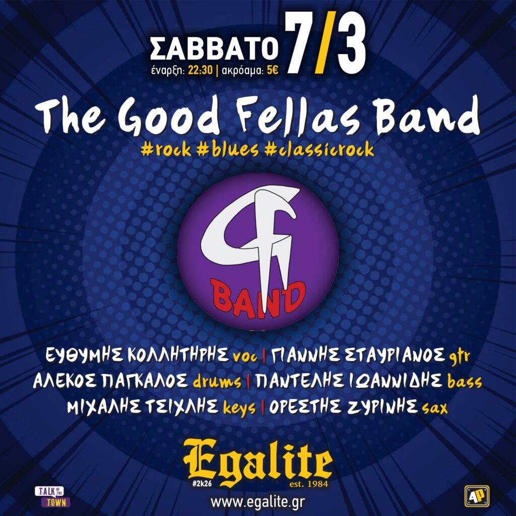 Μπάντα με πολυετή παρουσία και δράση, οι #GoodFellas ροκάρουν ανελλιπώς, με εμφανίσεις εντός & εκτός Αθηνών, με μια δυνατή & ξεσηκωτική λίστα που περιλαμβάνει super hits από Pink Floyd, Carlos Santana, Deep Purple, Rory Gallagher, Eric Clapton, The Doors, Blues Brothers, κ.α. ♪