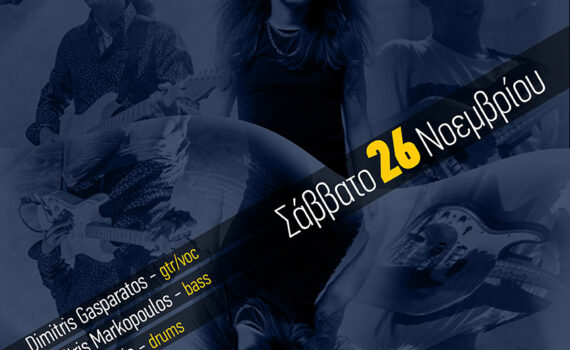 Παρασκευή 2 Δεκεμβρίου Classic Rock & Blues tunes,σε ισχυρές δόσεις.. Ο πολύπειρος George Zikosκαι η παρέα του, μας προσκαλούνσε αγαπημένες μουσικές διαδρομές! Deep Purple, Rory Gallagher, Jimi Hendrix,Lynyrd Skynyrd, Bad Company και τόσα άλλα,από ένα σχήμα με μεγάλη εμπειρία στο χώρο! Όπως δηλώνει ο ίδιος:“Από τον Alvin Lee ως τον […]