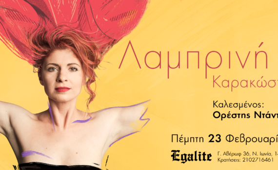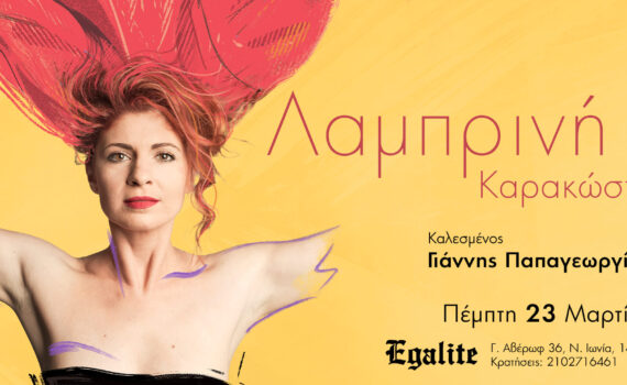Η Λαμπρινή Καρακώστα επιστρέφει και μας προσκαλεί για μια ακόμα ονειρεμένη βραδιά στην μουσική της παράσταση, παρέα με τους νέους εξαιρετικούς μουσικούς της. Η τραγουδοποιός και ερμηνεύτρια, μας παρουσιάζει τον δικό της μουσικό κόσμο, στον οποίο ο τρόπος που διαλέγει, αγγίζει, προσεγγίζει και συνδέει το κάθε τραγούδι, μέσω της ερμηνείας […]