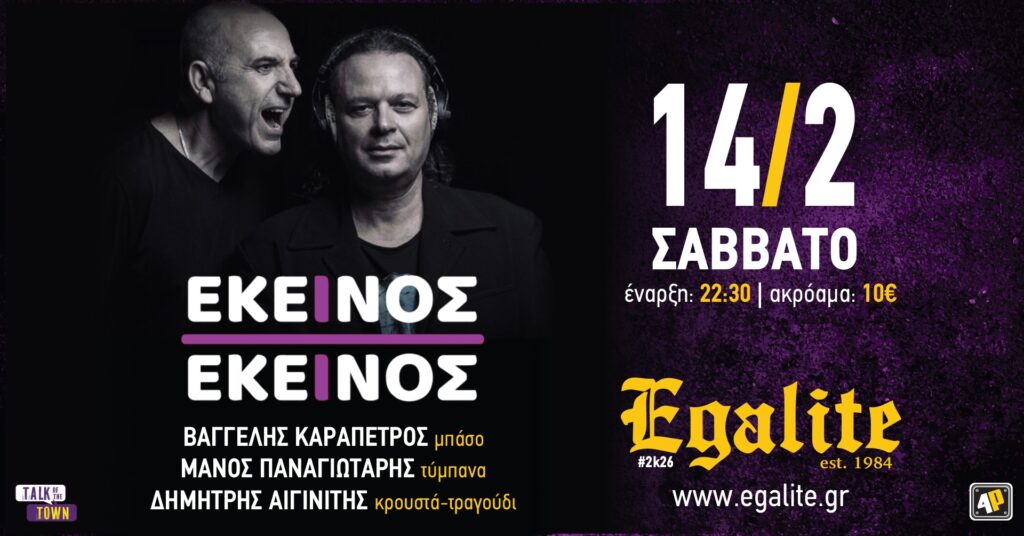 Ερμηνεύοντας τα πλέον “κλασσικά” “Χειμωνιάτικα Μπαρ”, “Χρώματα”, “Το Πάθος”, “Δεν θυμάσαι”, “Είσαι ότι Έχω”, “Παραισθήσεις”, “Τα Λόγια Κομμάτια” και τόσα άλλα αγαπημένα, οι Εκείνος + Εκείνος παρουσιάζουν ένα άρτιο – από κάθε άποψη – πρόγραμμα που ενώνει καλλιτέχνες και κοινό σαν μια παρέα! Σπεύσατε!