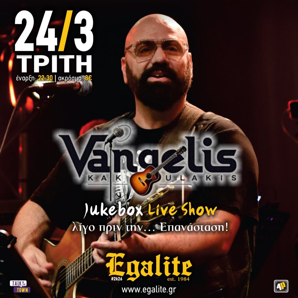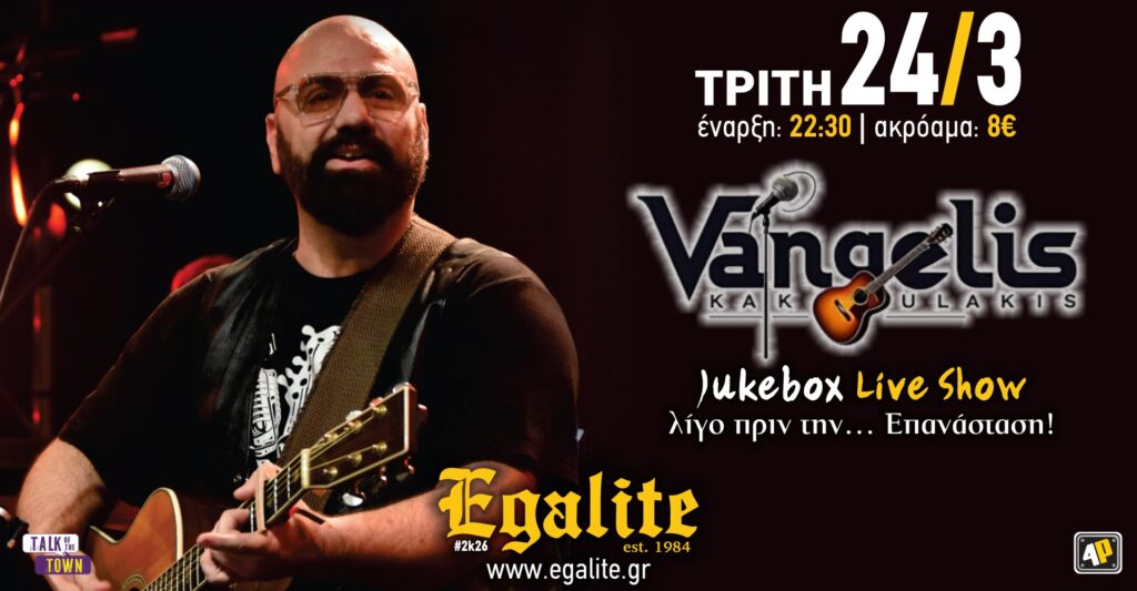 Λίγο πριν την ονομαστική του εορτή και μια ανάσα πριν την 25η Μαρτίου, ο Βαγγέλης Κακουλάκης ανεβαίνει στη σκηνή μας για ένα live που ΔΕΝ θα έχει playlist (!)